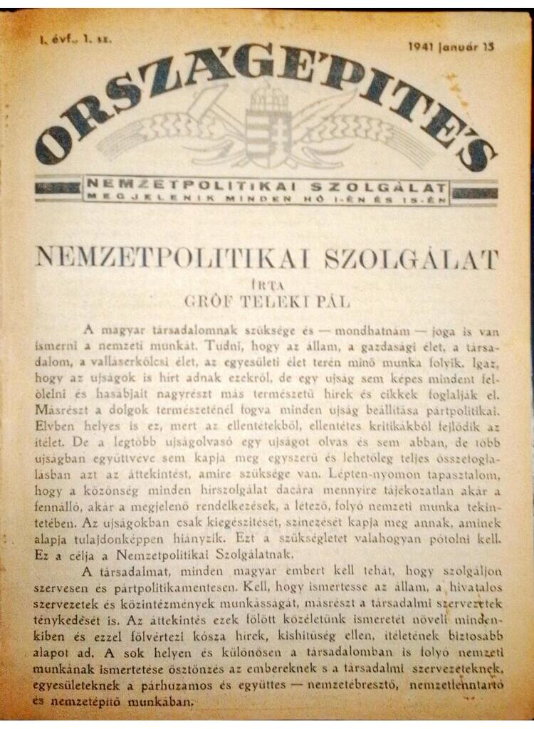 08 000 FtNemzetpolitikai kétheti megjelenésű kiadvány. Bekötve: I. évf., 1., 2., 13., 18. sz., II. évf., 1., 3., 7., 8., 9., 11., 12., 13., 15., 18., 20., 21., 22., 24. sz., III. évf., 1., 2., 5., 6., 7., 8., 9., 11., 12., 15., 16., 17., 18., 19., 20. sz., IV. évf., 6., 12., 15. sz.