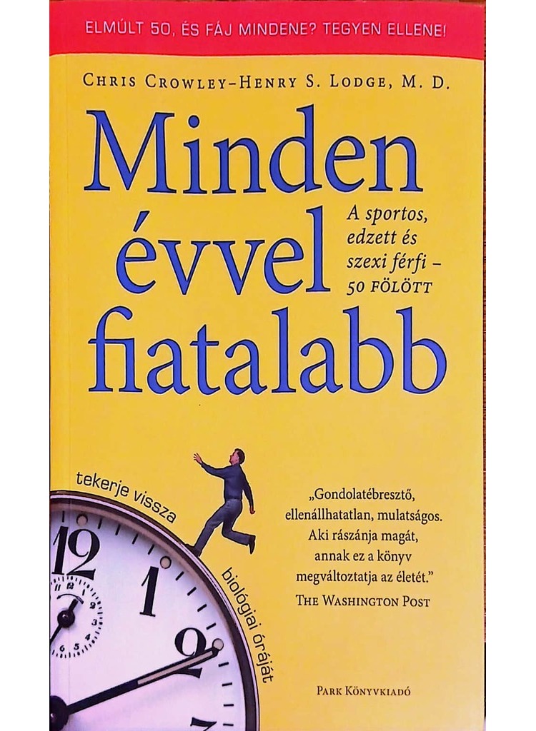 01 800 FtGratulálunk! A legjobb úton van afelé, hogy hamarosan fiatalabb legyen. Dr. Henry S. Lodge belgyógyász gondoskodik a tudományról, Chris Crowley nyugdíjas ügyvéd a motivációról. Népszerű és sikeres programjukból megtudhatja, miként számoljon le az öregedéssel járó problémák 70 százalékával – az erőtlenséggel, az ízületi fájdalmakkal, az egyensúlyzavarokkal –, és hogyan küszöbölje ki a súlyos betegségek, sérülések több mint a felét. Aki megfogadja a könyv bölcs tanácsait, az fizikailag (és szellemileg) évről évre fiatalabbá válhat a következő öt–tíz évben, és az időskort visszaszerzett vitalitással, boldogan élheti le. Az üzenet egyszerű: mozogjon rendszeresen 50, 60, 70 és 80 fölött, mert nemcsak képes lesz rá, de még élvezni is fogja.