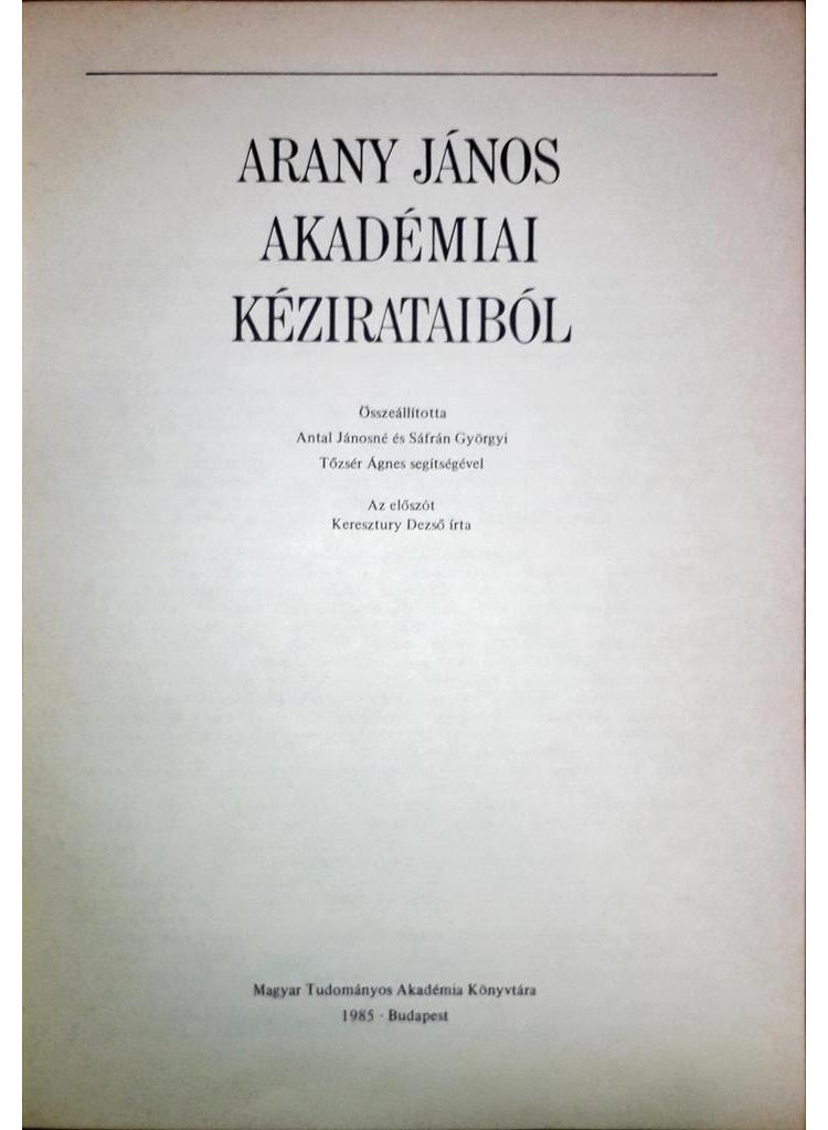Arany Kéziratainak legnagyobb gyűjteményét a MTAK őrzi. Ez érthető is: a költő-főtitkár közéleti pályájának második fele szorosan összefonódik az intézmény történetével; ha – nem ok nélkül – a Kisfaludy Társasághoz fűződő kapcsolatokat is ide sorolnók: voltaképpen az egész. De ha a válogatást azzal a Toldy Ferencnek 1859. jan. 10-én írt levéllel kezdjük is, amellyel megköszönte a Marczibányi díjat s éppen az „Epilógus”-nak a Kapcsos Könyvből 1877. július 4-e után kimásolt kéziratával végezzük: a legterjedelmesebb, változatosabb és több tanulságot nyújtó darabokat tehetjük egymás mellé. Nagy a forrásértékük a hivatali iratoknak is. Ilyen tekintetben sokan felhasználták őket; főképpen Gergely Pál, aki ez iratok temérdekségét észrevette,a munkába temetkező lángelmét megsiratta, az anyagot elrendezte, válogatott darabjait a kritikai kiadás vaskos XIV. kötetében teljes szövegükkel, az összesek jegyzékét rövid magyarázattal közzétette. A levelek, főként a barátiak, sokkal többet mondanak Arany személyiségéről. Ezeknek keletkezését, emberi környezetét, a költő „levelezési szokásait” Sáfrán Györgyi derítette fel a kritikai kiadás XV. kötetének meg az „Arany János leveleskönyve” című kiadványnak bevezetésében. A verses és prózai művekről főképpen szövegtörténeti és szövegváltozati adalékok találhatók összefoglalva a kritikai kiadás I-XII. kötetében.