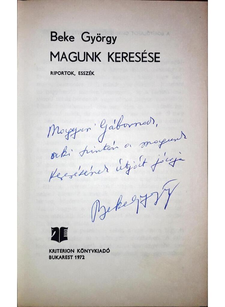 A moldvai csángó-magyarok közé és a Gyimes völgyébe hív magával ebben a könyvében barangolásra az író, hogy e tájak lakóinak sorsát, múltját és jelenét életközelből megismerhessük. Majd az olajvárosnak, Ploiesti-nek magyar lakóiról hoz, lényegében elsőnek, irodalmi híradást. Közben újra meg újra visszatér szűkebb hazájába, a Székelyföldre, s a jelen embereivel együtt, történelmet és mai gondokat ötvöző esszékben idézi meg tanúságtételre Báthori István, Bem tábornok, Gábor Áron vagy Bolyai János alakját, példáját. Riportjai, publicisztika írásai izgalmas felfedezések, a romániai magyarság életének egyik-másik alig ismert vonatkozását emelik be tudatunkba; a nemzetiségi önismeret szélesebb távlatait s a román néppel való együttélés olyan korszerű példáit idézik, amelyek egyszerre szolgálják a közös alkotómunkát és a romániai magyarság gazdasági, nyelvi, kulturális életének gazdagodását. Éppen ez a közös téma és hangütés fogja természetes módon egy kötetbe ezeket a műfajilag különböző írásokat.