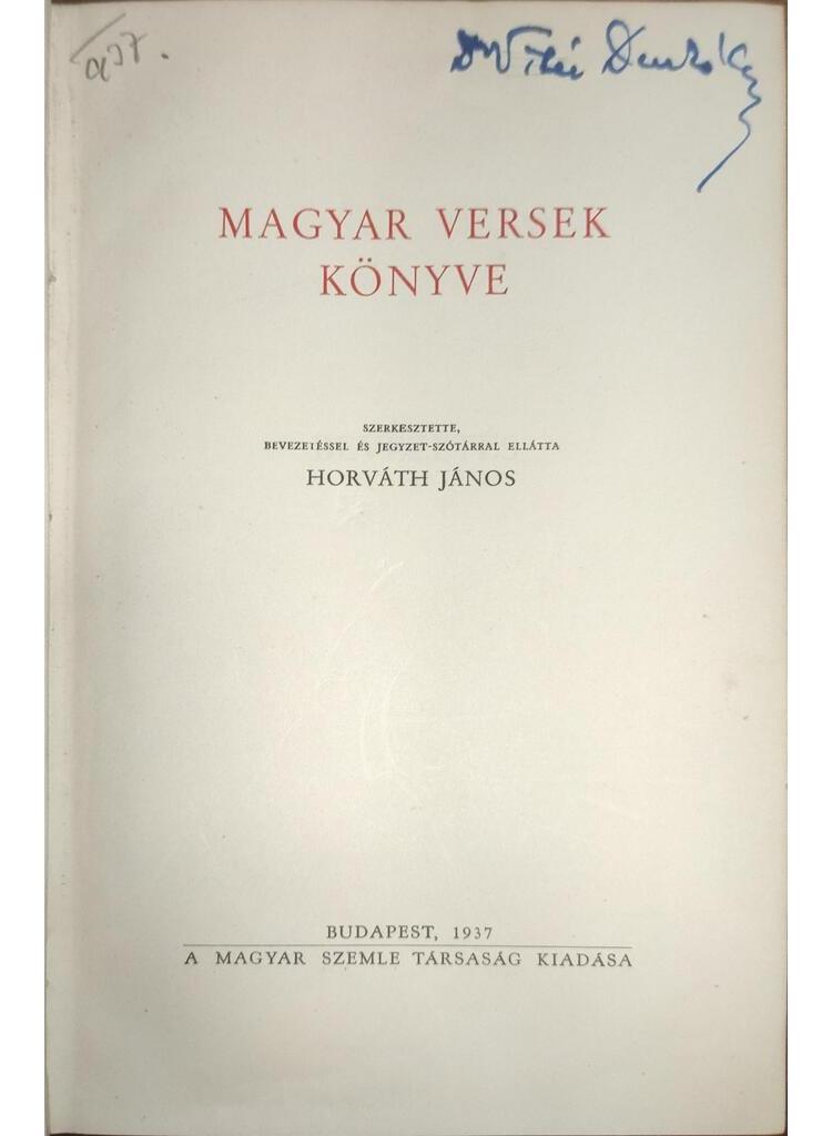A Magyar Szemle Klasszikusai címen a Magyar Szemle Társaság jelen kötetével új sorozatot indít, amely a magyar szellem részint feledésbe merült, részint nehezebben hozzáférhető irodalmi emlékeit bocsátja a magyar olvasóközönség elé. A Magyar Versek Könyve címet viselő antológia vezeti be az új sorozatot, Horváth Jánosnak, a budapesti Pázmány Péter tudományegyetem nagynevű irodalomtörténet tanárának szerkesztésében. A magyar költészet színe-javát veszi itt az olvasó, a legrégibb magyar verstől Ady Endréig, nemcsak a lírai költészet legszebb darabjait, hanem a magyar elbeszélő poézis jellegzetes részleteit is. Akik a Magyar Szemle Könyvei sorozatában Horváth János két irodalomtörténeti kötetét ismerik, tudni fogják, hogy „A magyar irodalmi műveltség kezdetei” és „A magyar humanizmus” című kötetek szerzője mily nagy szakavatottsággal és műgonddal készíthette el ezt a verses antológiát. A szerkesztő a kiválogatás szempontjait külön Bevezetés-ben ismerteti s egyben tájékoztatást nyujt a magyar költészet fejlődéséről, kimagasló alakjairól, a közönséghez való viszonyáról. A kötet végén, szótárszerű rendben, jegyzetek igazítják el az olvasót a költők kilétéről s egyúttal a versek egyes régi kifejezéseit, tájszavait is megmagyarázzák.