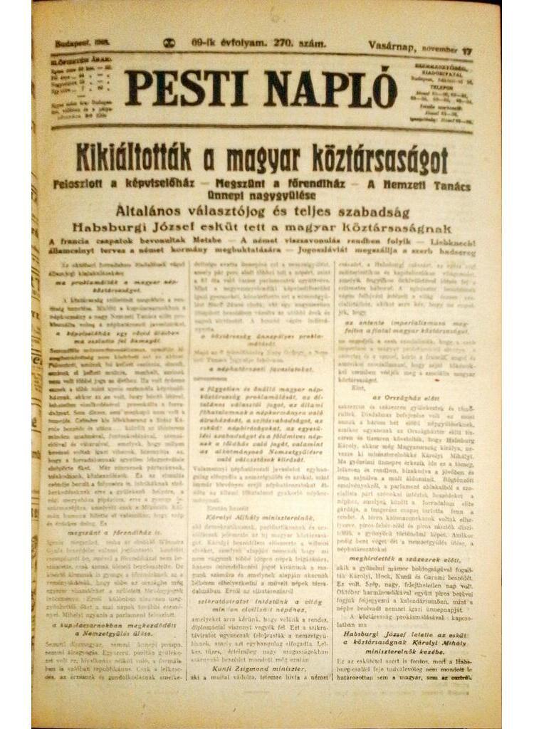 Benne: Pesti Hírlap; Az Est; Az Ujság; Pesti Napló; Köztársasági Újság; Világ; Virradat; Kisújság; Tanácsköztársaság; 8 órai újság; Fáklya; Hétfői Újság; Népszava; Budapesti Közlöny; Nemzeti Újság stb.