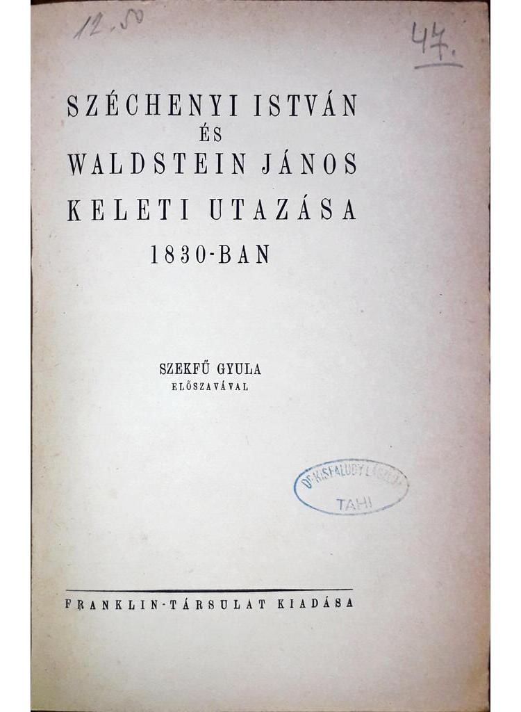 „Széchenyi István és Waldstein János keleti utazása 1830-ban” értékelése elsőként