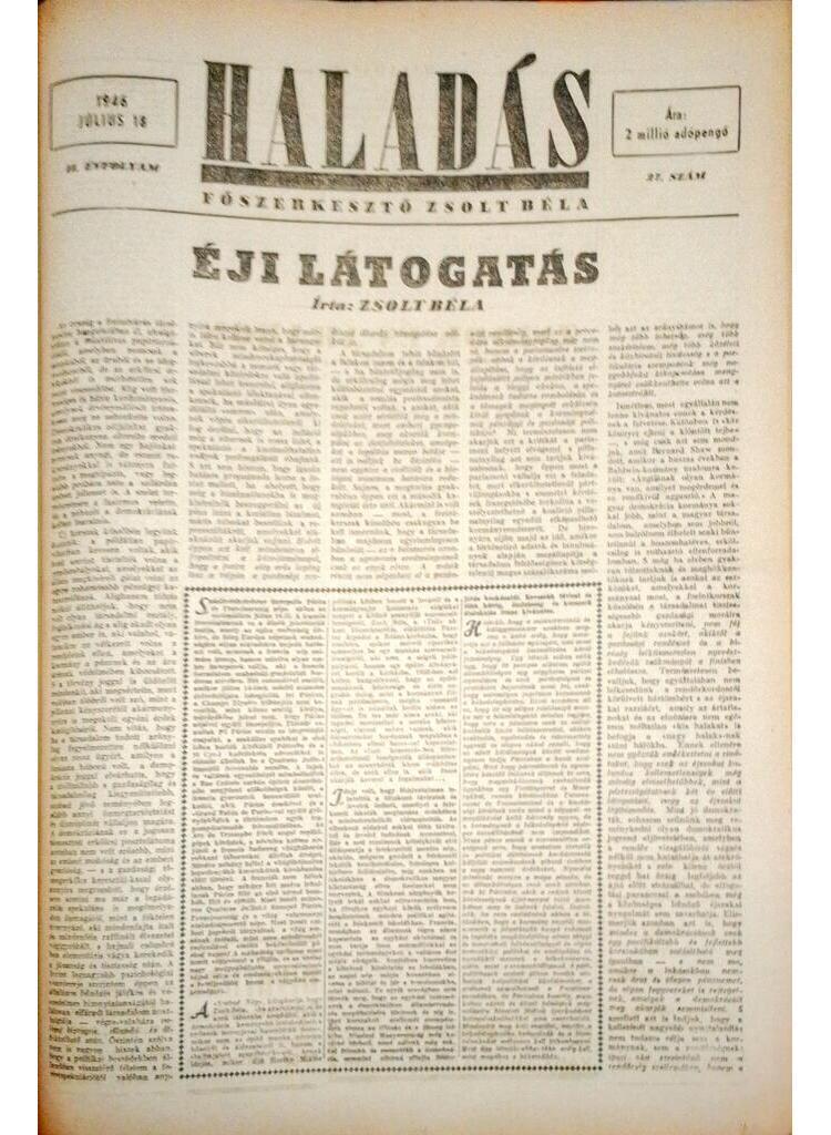 A következő lapok számait tartalmazza: Kis Ujság: 60. évf., 147. , 155., 156., 161., 162., 166., 167., 168. sz., Uj Szó: II. évf., 150., 162., 168. sz., Független Magyarország: VIII. évf., 27. sz., A Világpolitika és a Magyar Szellemi Élet Hetilapja: II. évf., 27. sz., Pesti Tőzsde: 4. sz., Köztársaság: I. évf., 5., 6., 7. sz., Igazság: II. évf., 24. sz., Igaz Szó: II évf., 12. sz., VIlág: 336., 350. sz., Népsport: II évf., 103. sz., Szabad Föld: II. évf., 28., 30. sz., Új Magyarország: II. évf., 28. sz., Haladás: II. évf., 27., 28. sz., Igazság: II. évf., 25., 26. sz., Ifjúság: II. évf., 27., 28. sz., Igaz Szó: II. évf., 18., 14. sz., Esti Szabad Szó: 48. évf., 158., 159., 163., 164., 165. sz., Világosság: 2. év., 162., 163., 164., 166., 167. sz., Szabad Nép: IV. évf., 162., 168. sz., Magyar Nemzet: II. év, 160., 163., 165., 166. sz., Hétfői Kossuth Népe: II. évf., 133., 134. sz., Új Magyarország: II. évf., 29. sz., Szabadság: II. évf., 166., 167., 168. sz., Népszava: 74. évf., 167. sz., Új Ember: II. évf., 30. sz., Közgazdaság: I. évf., 2. sz.